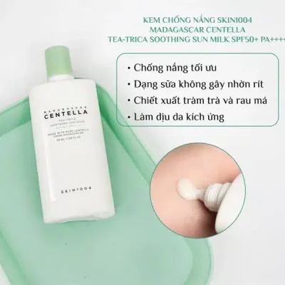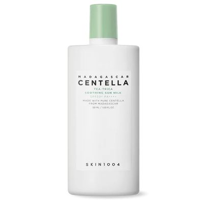 ضد آفتاب چای سبز سنتلا اسکین 1004 SKIN 1004 MADAGASCAR CENTELLA – TEA-TRICA SOOTHING SUN MILK – 50 ml